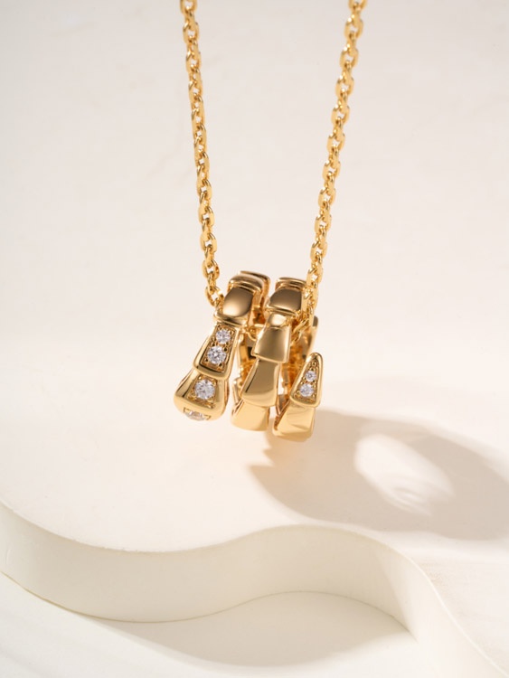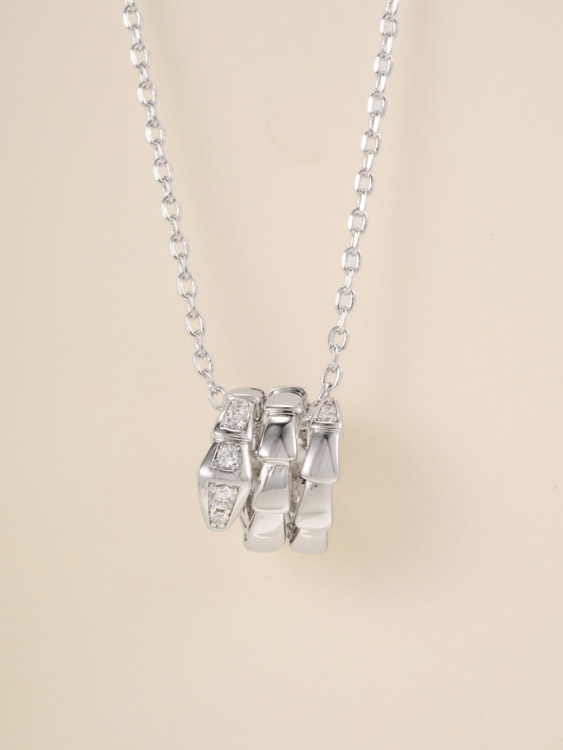 Bulgari snake bone tail diamond necklace-3796