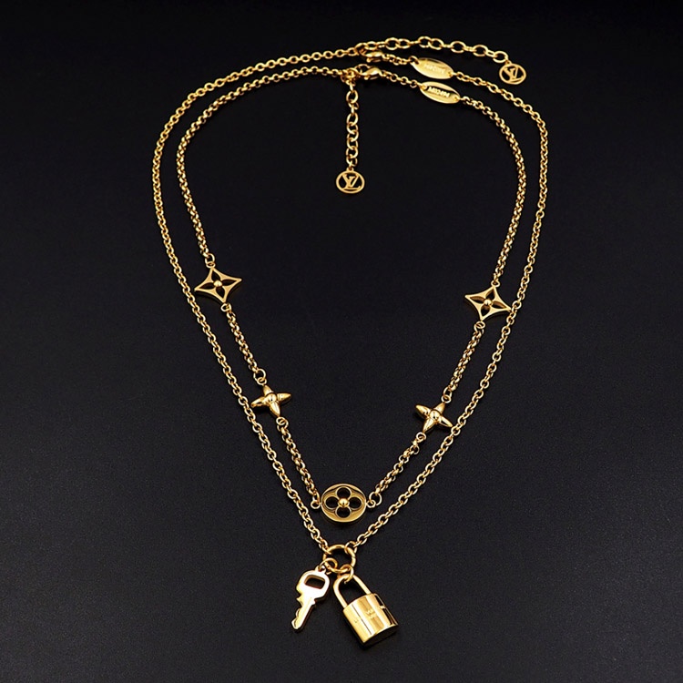Louis Vuitton LV detachable double chain floral and letter pattern padlock necklace-3808