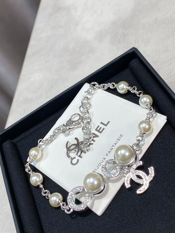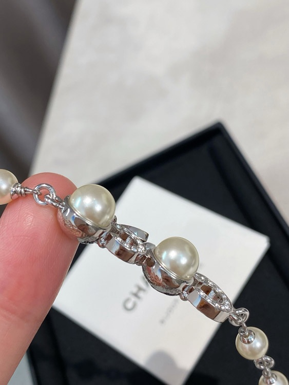 Chanel Double C Rhinestone Pearl Bracelet-3834