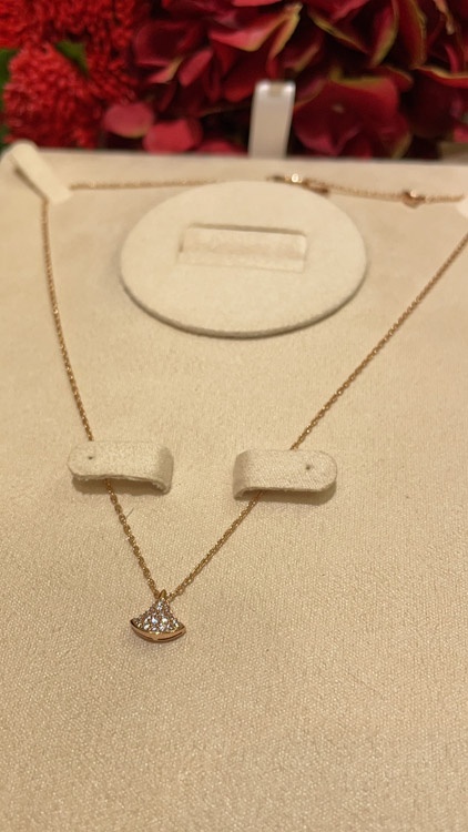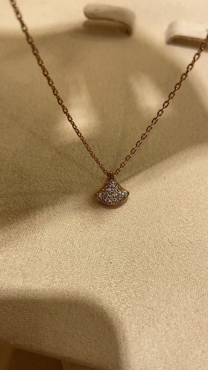 Bulgari small fan white mother-of-pearl rose gold half diamond full diamond necklace-3853