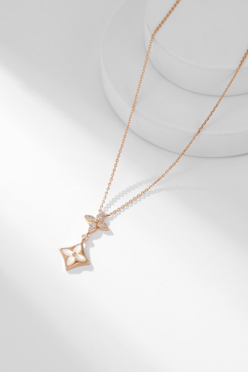 Louis Vuitton LV floral pattern diamond-set mother-of-pearl necklace-3860