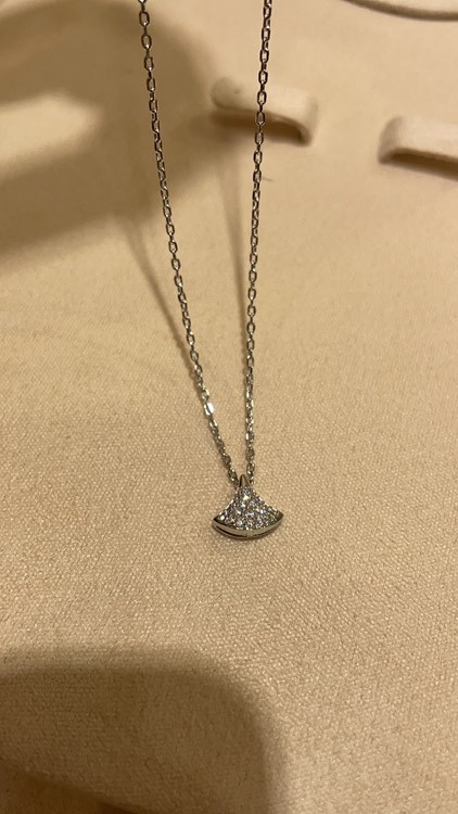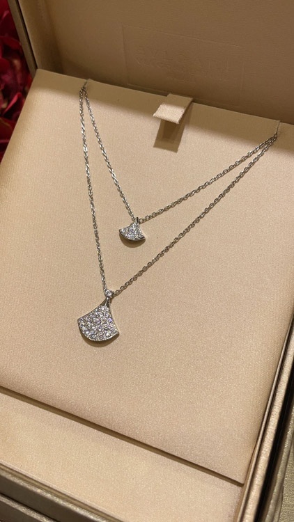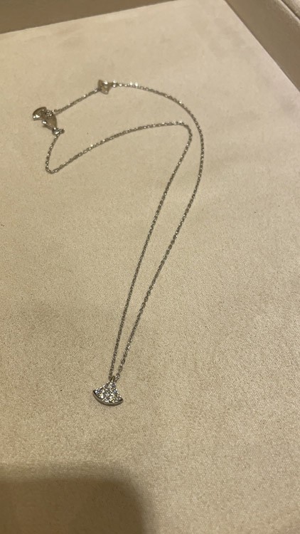 Bulgari small fan full diamond white gold necklace-3896